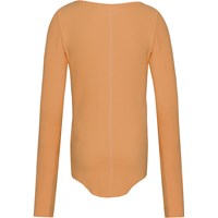 Langærmet bluse i økologisk bomuld med smalle striber i koral, grøn, gul og lilla. Denne bluse har hul til tommelfinger, en rund halsudskæring, samt et slim fit. Den perfekte bluse, der kan styles enten med en strik eller jakke udover, eller bare helt som sig selv.