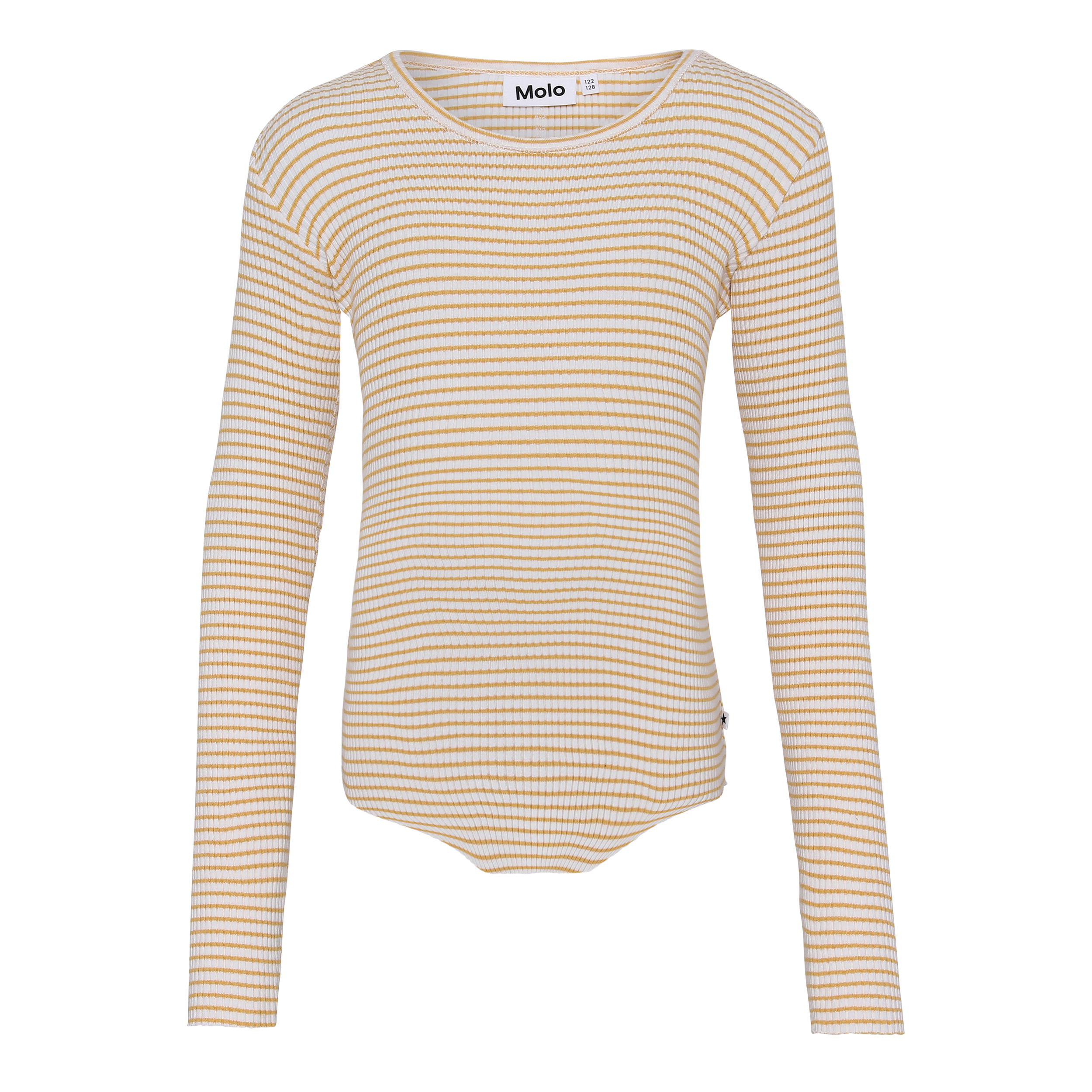 Rochelle er den perfekte bluse, som du aldrig får nok af. Rochelle er her i hvide og gule striber. Blusen er i rib kvalitet og har hul til tommelfingrene.