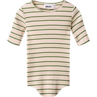 Stribet t-shirt i strækbar økologisk bomuldsrib. Blusen har en tætsiddende pasform med rund hals og en rå kant i bunden.