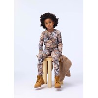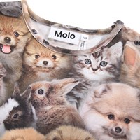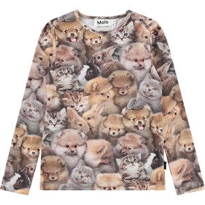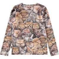 Brun langærmet bluse i økologisk bomuld med rund hals og kantbånd. Blusen er tætsiddende og har et print af søde dyr i brune nuancer.