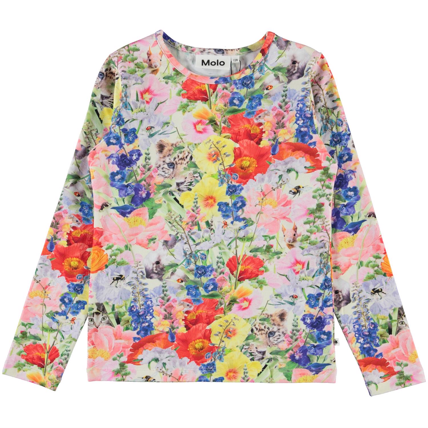 Rose er en langærmet bluse med printet 'Hide and Seek', hvor forskellige dyr gemmer sig i blomster printet. Rose har en rund halsudskæring. Certificeret af Ecocert Greenlife, certifikationsnr. 197496.