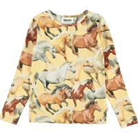 Rose er en langærmet bluse i gul med heste print. Rose har en rund halsudskæring.