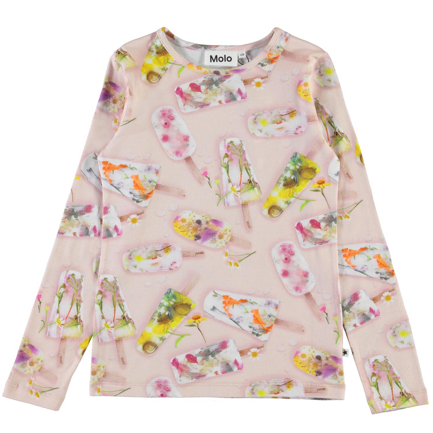 Rose er en langærmet bluse med is print. Molo har selv frosset disse flotte blomster is, som er blevet til dette print. T-shirten har helt korte ærmer og gråt kantebånd. Certificeret af Ecocert Greenlife, certifikationsnr. 197496.