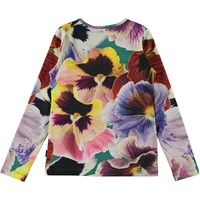 Rose er en langærmet bluse med all-over print af store blomster. Blusen har en rund halsudskæring.