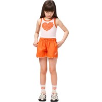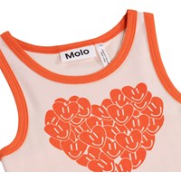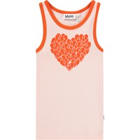 Lyserød tanktop i blødt økologisk bomuld med rund halsudskæring og røde kantbånd. Toppen er tætsiddende med et hjerte print på fronten.
