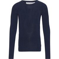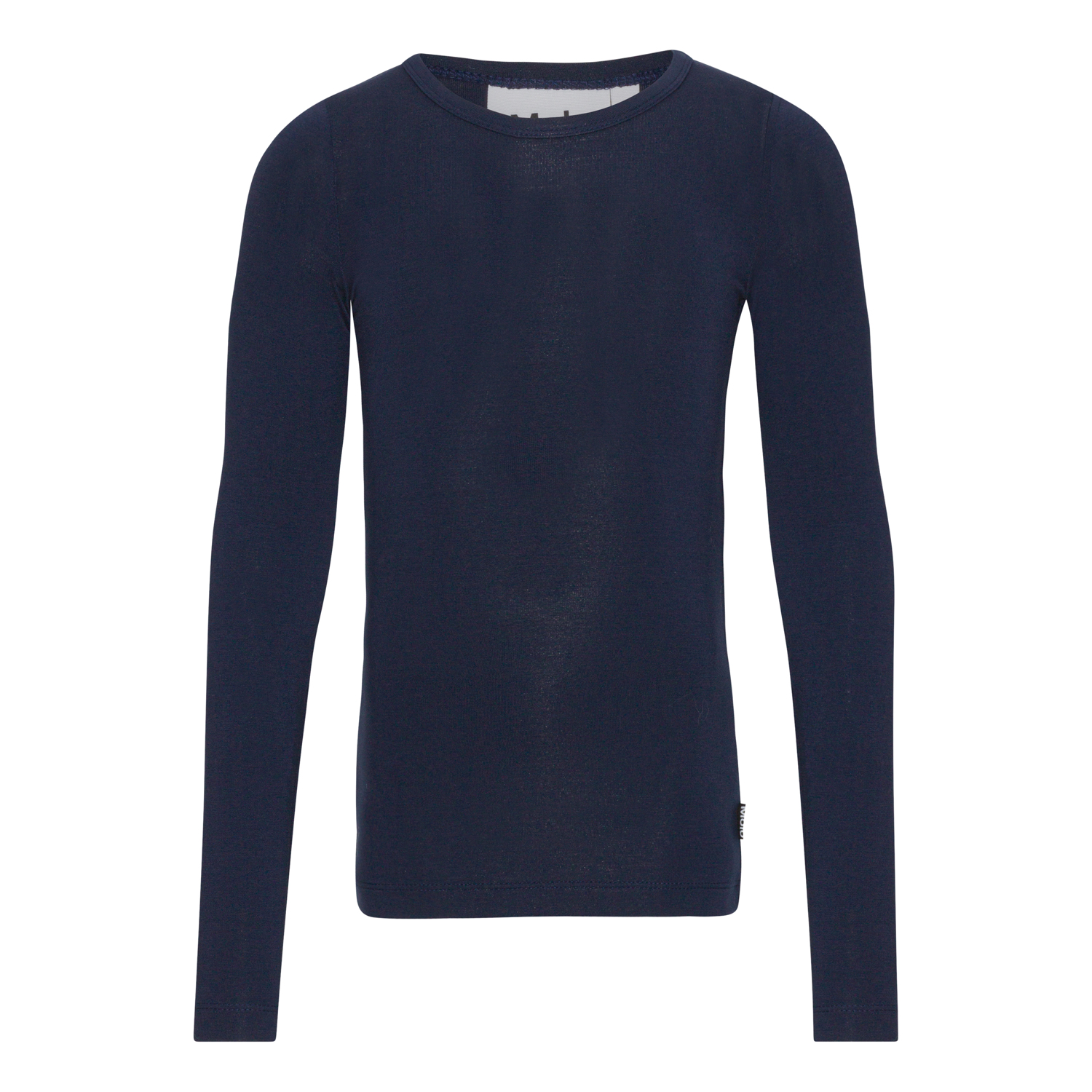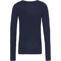 Mørkeblå langærmet bluse i 100% viskose jersey, der gør den blød og lækker at have på. Den har en rund halsudskæring, samt et slim fit. Den perfekte bluse, der kan styles enten med en strik, sweat eller jakke udover, eller bare helt som sig selv.