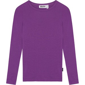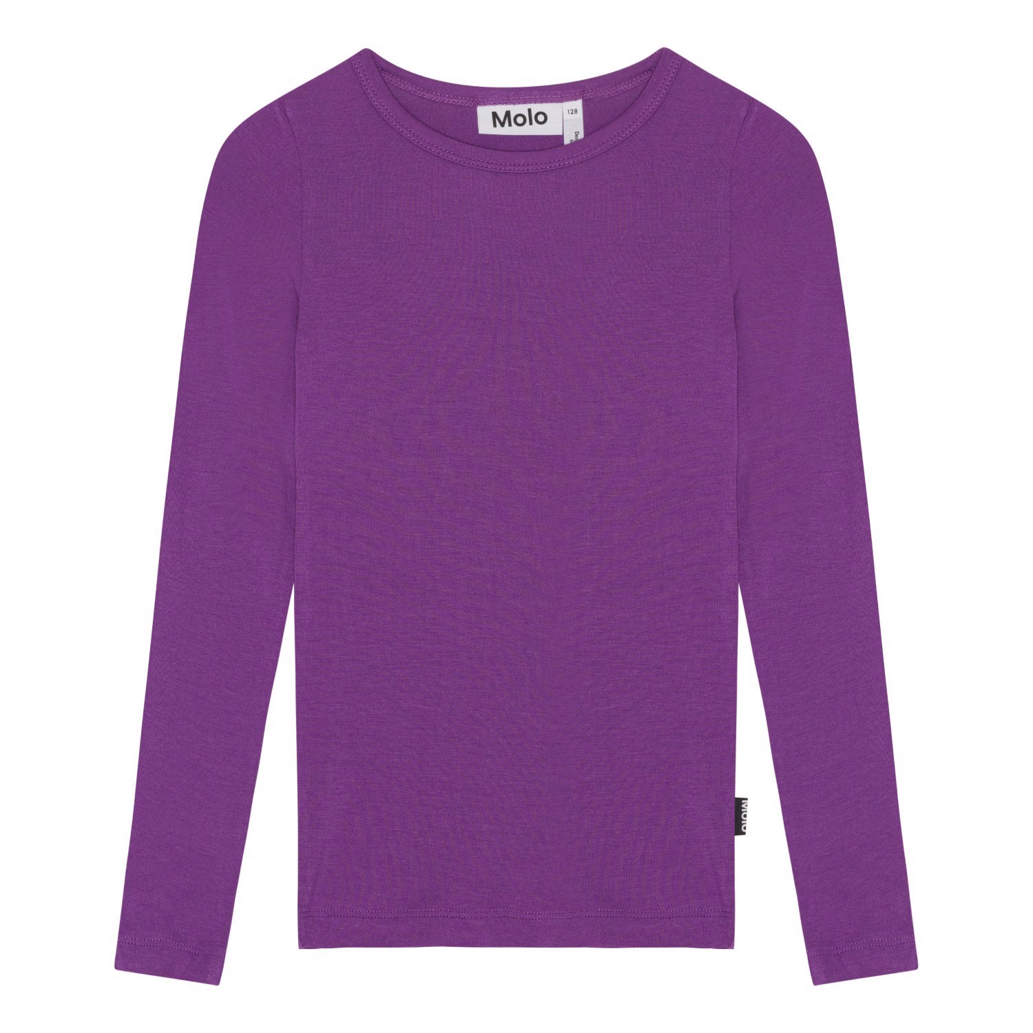 Lilla langærmet bluse i en let og strækbar viskose kvalitet. Blusen har en tætsiddende pasform og en rund halsudskæring.