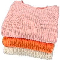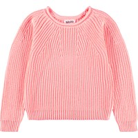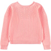 Lyserød langærmet striktrøje i blødt økologisk bomuld med rund hals. Trøjen har en løs pasform, er ribstrikket med fine ind- og udtagninger, samt ribkanter ved ærmer og hofte.