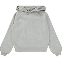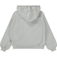 Lys gråmelange hættetrøje i strik. Denne hættetrøje er fremstillet i en bomuld/nylon/uld blanding, der gør den både blød og slidstærk. Den har en hætte med ribkant, raglansnit, lange ærmer med ribkant, ribkant ved hoften, samt et regulært fit. Match evt. denne hættetrøje med bukserne, Abigale, i samme farve og kvalitet, for et blødt og cute look.