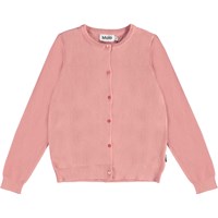 Georgina er en rosa bomulds cardigan. Cardiganen er i fint strikket mønster og med knappelukning.
