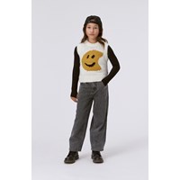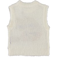 Hvid strikvest med gult smilende ansigt på fronten - Perfekt til udover kjoler, skjorter og bluser, som et ekstra cool lag til dit outfit. Denne strikvest er fremstillet i en alpaca uld/akryl blanding, har en rund halsudskæring med rib, ribkant ved ærmegab og hofte, samt et regulært fit.
