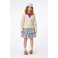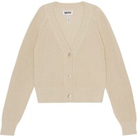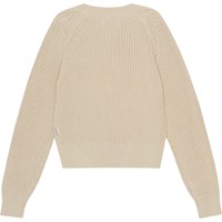 Sandfarvede cardigan i strikket blødt bomuld. Cardiganen har ribbet halskant og stolpe med 3 perlemors knapper, ærmerne er lange og afsluttes med en ribkant. Cardiganen har et klassisk og løst look med raglandsærmer og en afsluttende rib i bunden.