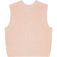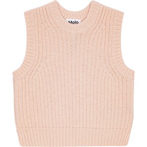 Pudderfarvet strikvest i blød uld/akryl blanding. Perfekt til at lægge over kjoler, skjorter og bluser for et ekstra cool lag til dit outfit. Vesten har en rund halsudskæring med rib, ribkant ved ærmegab og hofte. Den har også en normal pasform.