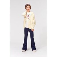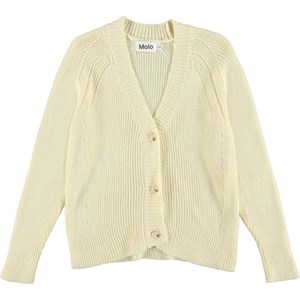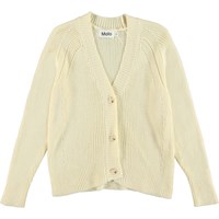 Gilda er en perlemors farvet strik cardigan. Cardiganen har v-udskæring, kort pasform og knappelukning.