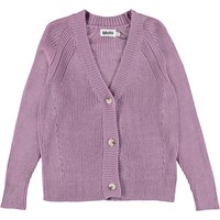 Gilda er en lyselilla strik cardigan. Cardiganen har v-udskæring og knappelukning.