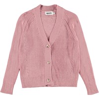 Gilda er en rosa strik cardigan. Cardiganen har v-udskæring, kort pasform og knappelukning.