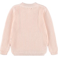 Rosa langærmet striktrøje i blødt økologisk bomuld med rund hals. Trøjen har en løs pasform, er ribstrikket med fine ind- og udtagninger, har ekstra længde bagtil samt slidser i siderne.