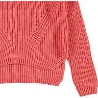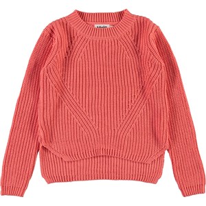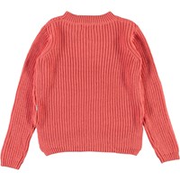 Gillis er en koral farvet bomulds strikbluse med lange ærmer. Blusen har rund hals og fint strik mønster. Blusen er fremstillet af 100% økologisk bomuld.