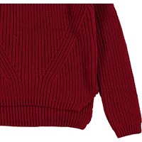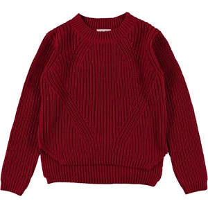 Gillis er en mørkerød bomulds strik bluse med lange ærmer. Blusen har rund hals og fint strik mønster. Blusen er fremstillet af 100% økologisk bomuld.