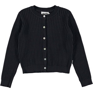 Gloria er sort strik cardigan med en kort pasform. Cardiganen har knappe lukning på fronten.