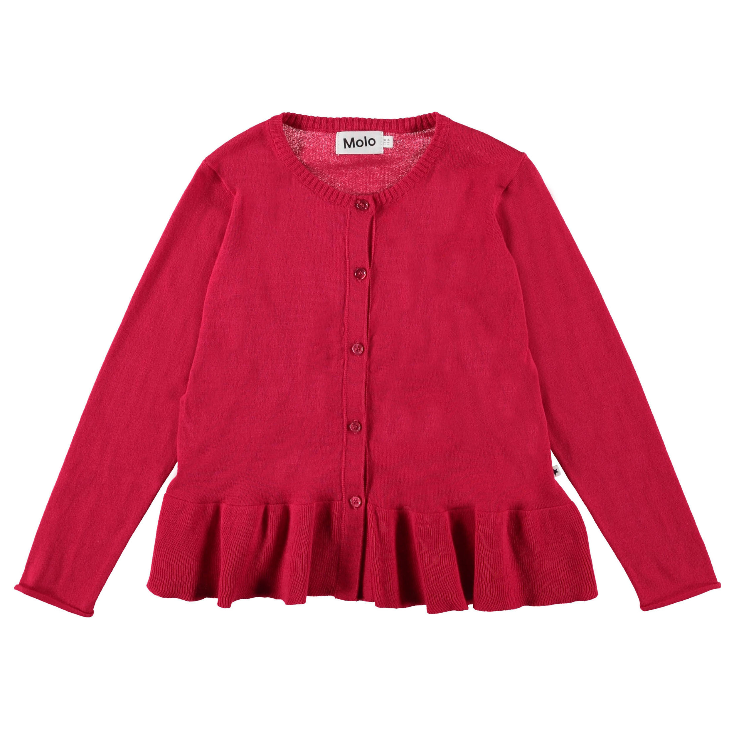 Gulia er en hindbær farvet cardigan. Gulia har knappelukning og peplum skørt.