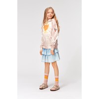Madelyn er en lyserød tie-dye hættetræje med kængurulomme på fronten. Hættetrøhen harv broderet 'Follow your heart' på det ene ærme.