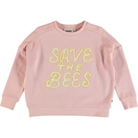 Mandy er en rosa sweatshirt i let oversized fit med broderet "save the bees" over brystet. Kombiner sweatshirten med styles i Molo's print "Save The Bees".