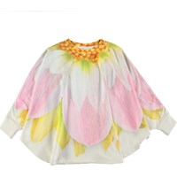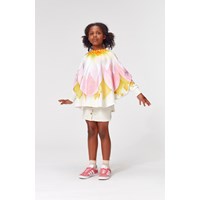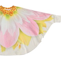 Marcella er en lys poncho med print af en blomst, som folder sine blade ud. Størrelserne svarer til: S= 2-4 år M= 5-7 år og L= 8-12 år.