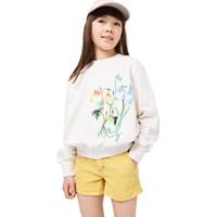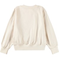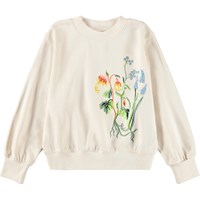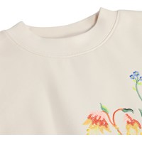 Råhvid sweatshirt i blød, økologisk bomuld med rund hals og ribkanter ved ærmer, hals og bund. Sweatshirten har en løs, afslappet pasform med et farverigt broderi af blomster.