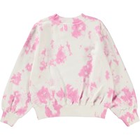 Marge er en hvid og pink tie dye sweatshirt fremstillet i 100% økologisk bomuld. Sweatshirten har ribkant ved hals, håndled og hofte. Kombinér med matchende sweatpants, Anastasia, for et komplet outfit.Molos tie dye print er unikt og lavet i hånden. Printet kan derfor variere fra style til style.