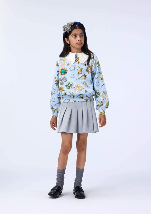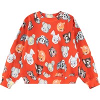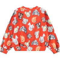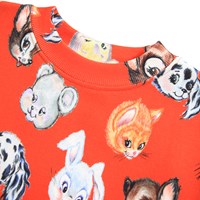 Orange sweatshirt i økologisk bomuld med rund hals og ribkant ved hals, bund og ærmer. Sweatshirten har en oversize pasform og et print af søde tegnede dyr.