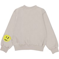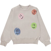 Marge er en beige sweatshirt fremstillet i 100% økologisk bomuld. Blusen har ribkant ved hals, håndled og hofte, og er påsyet med smilende palliet patches.