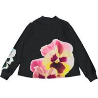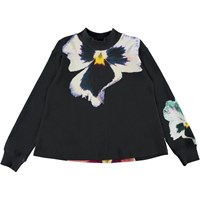 Margo er en mørk sweatshirt med print af store blomster. Blusen har en kort og bred pasform.