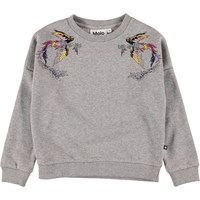 Marigold er en grå sweatshirt med en smule glimmer. Marigold har broderede fugle på fronten af blusen.