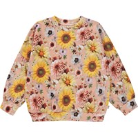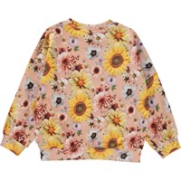 Lyserød sweatshirt med allover blomsterprint. Printet består af en masse forskellige blomster, som fx solsikker og geoginer, i lyserøde og gule nuancer. Denne sweatshirt er fremstillet i 100% bomuld, har en rund halsudskæring med ribkant, ribkant ved ærmer og hofte, samt et loose fit. Match evt. denne sweatshirt med nederdelen, Barbera, i samme print, for et cute look.