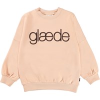 Marika er en rosa sweatshirt med teksten 'Glæde' på fronten. Sweatshirten har en oversized pasform.