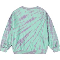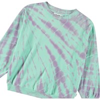 Lilla og lysegrøn tie-dye sweatshirt i blødt økologisk bomuld med ribkanter ved hals, ærmer og i bunden af blusen samt en løs pasform. Kombiner med matchende shorts for et komplet sæt.Bemærk venligst, at alt vores tie-dye er håndlavet, hvilket skaber et unikt mønster, der varierer fra style til style.