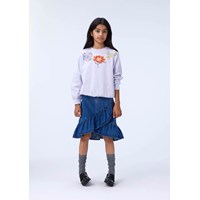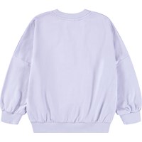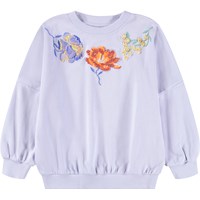 Lyslilla sweatshirt i økologisk bomuld med blomsterbroderi og pailletter. Sweatshirten har rund hals med ribkanter ved ærmer, hals og bund, samt løs pasform.