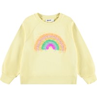 Lysegul sweatshirt i økologisk bomuld med et paillet-broderier af vores ikoniske regnbue foran. Sweatshirten har raglanærmer, ribkant i halsen, nederst på ærmerne og forneden med slids i siderne.