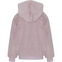 Maureen er en lilla hættetrøje i faux fur. Hættetrøjen har ribkant i bunden og ved ærmeafslutning.