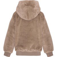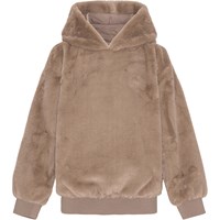 Beige hoodie i faux fur. Fin og eksklusiv hoodie til de koldere dage. Denne hoodie er fremstillet i 100% polyester faux fur, har hætte, lange ærmer med ribkant, ribkant ved hoften, samt et regulært fit.