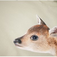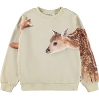 Beige sweatshirt i økologisk bomuld. Sweatshirten har en løs pasform, rund halsudskæring og ribkanter samt et print af skovens dyr.