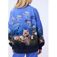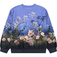 Blå sweatshirt i økologisk bomuld. Sweatshirten har en løs pasform, rund halsudskæring og ribkanter samt et print af dyreliv i månens skær.