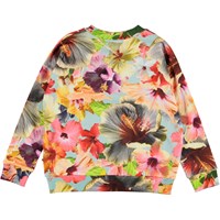 Blomsterne springer ud i flotte farver her i printet 'Pacific Floral' på sweatshirten Maxi. Sweatshirten har ribkant ved hals, bund og ærme afslutning.