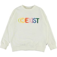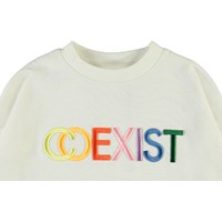 Maxi er en hvid sweatshirt med teksten 'Co-exist' broderet i flere farver over brystet. Sweatshirten har en oversized pasform. Certificeret af Ecocert Greenlife, certifikationsnr. 197496.