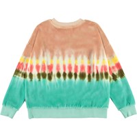 Mika er en grøn og rosa velour sweatshirt med tie-dye print på midten.