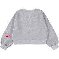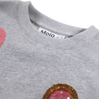 Grå sweatshirt i økologisk bomuld med broderi med pailletter formet som hjerteansigter. Sweatshirten har rund hals med ribkanter ved ærmer, hals og bund, samt løs pasform.
