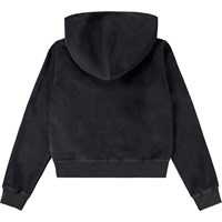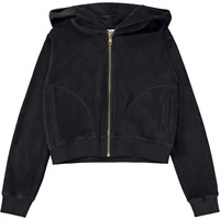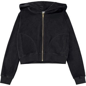 Sort velour hættetrøje med lynlås. Denne hættetrøje er fremstillet i en bomulds/polyester blanding, har en hætte, lynlås på fronten, lommer i siden, langeærmer med ribkant, ribkant ved hoften, samt et regulært fit. Match evt. denne hættetrøje med bukserne, Annie, i samme farve og kvalitet, for et cool look.