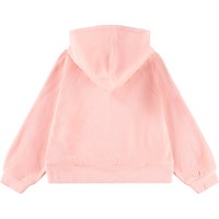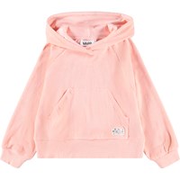 Ferskenfarvet hættetrøje i blød, økologisk bomuldsfrotté med ribkanter ved ærmer og i bunden. Hættetrøjen har en løs og afslappet pasform med kængurolomme på fronten og et lille logo med teksten ´Better together´.