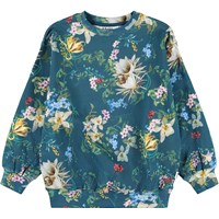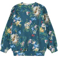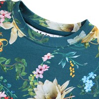Grøn sweatshirt i blødt økologisk bomuld med blomsterprint. Sweatshirten har ribkanter ved hals, ærmer og i bunden af blusen. Sweatshirten har en løs pasform.